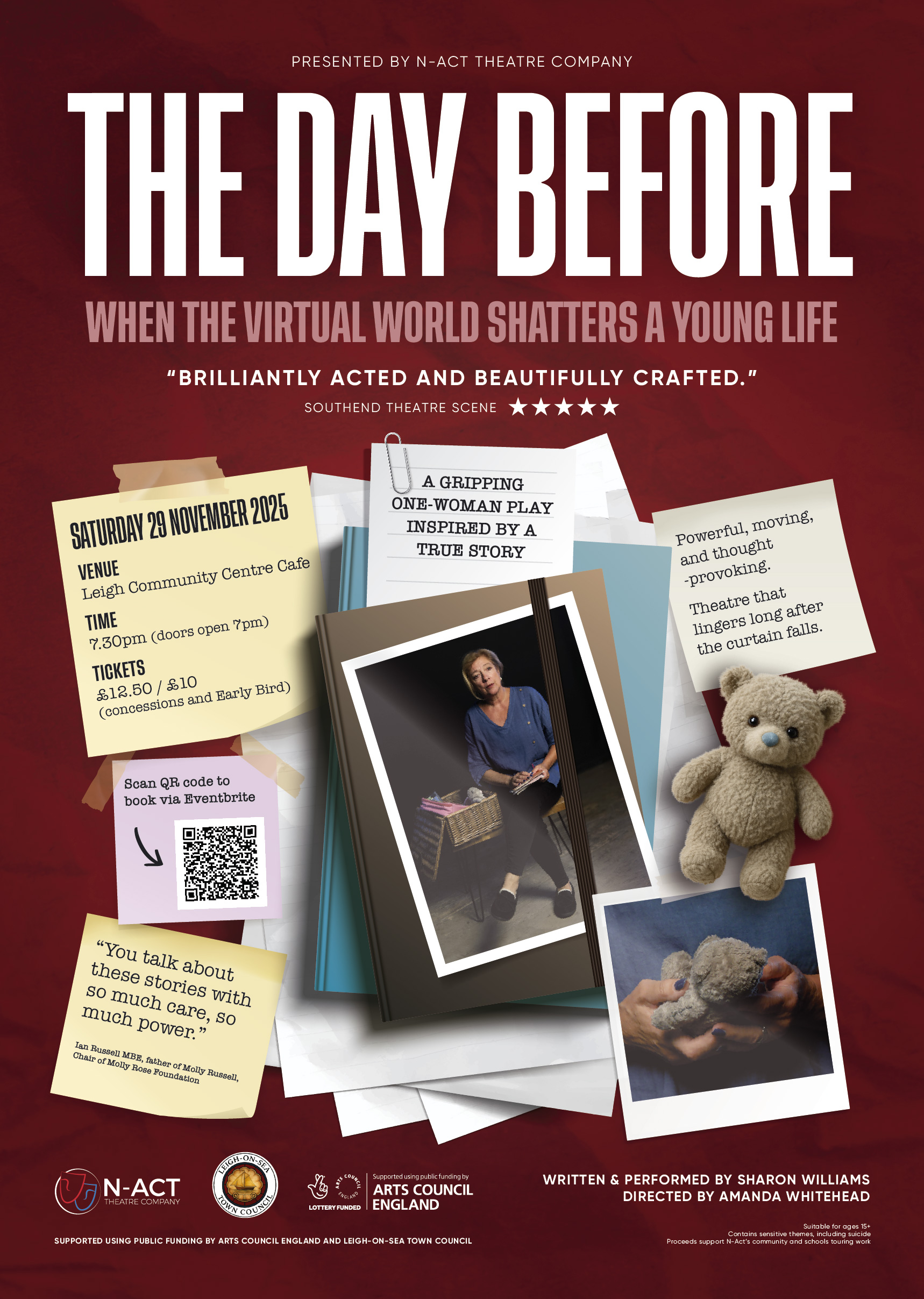 A powerful new one-woman play inspired by a true story. The Day Before — A One-Woman Play by N-Act Theatre Company Inspired by a true story, The Day Before shines a light on the hidden influence of...